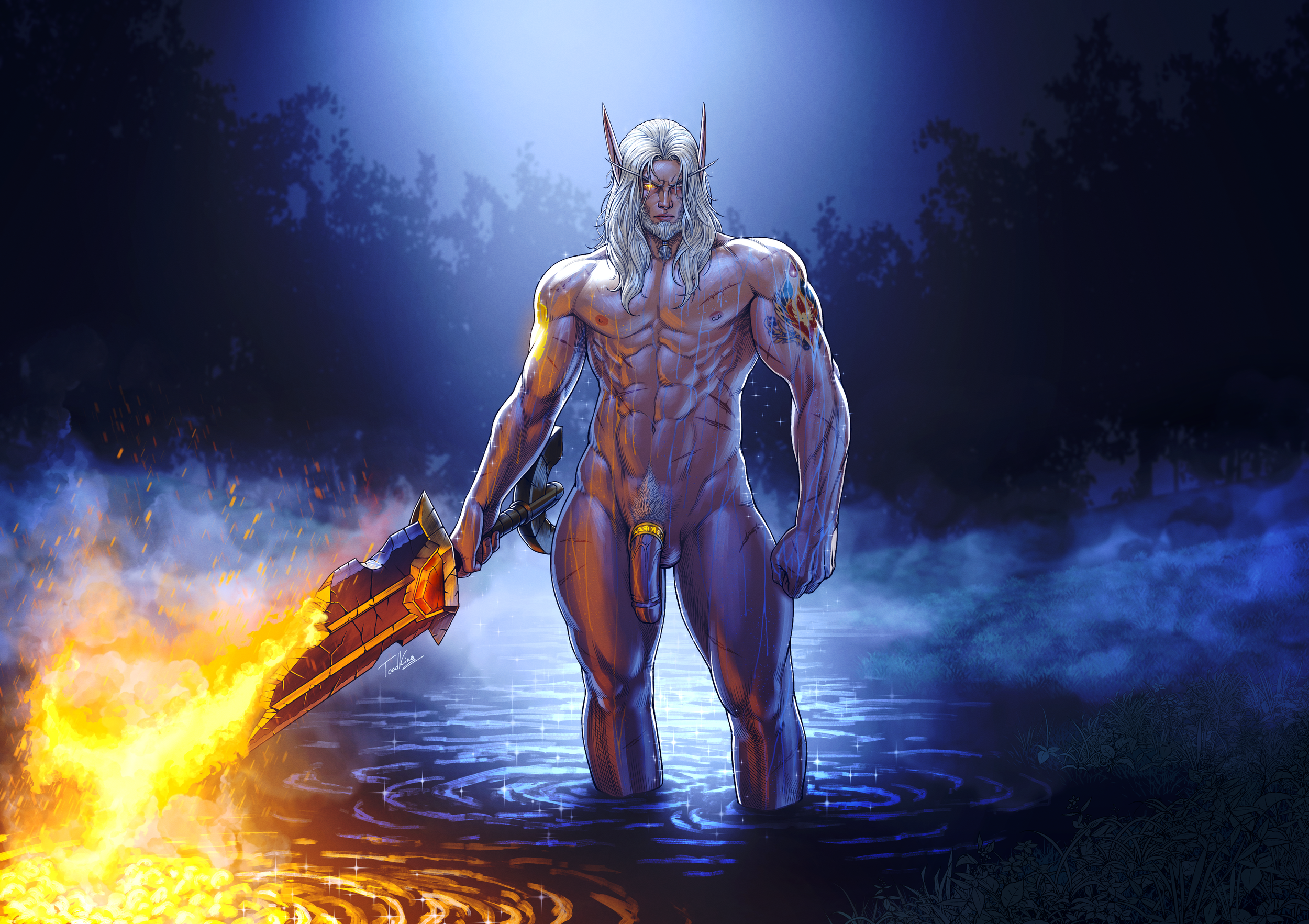 Two views of Kalec by moonlight: One in his armor, the other in the nude. You decide if he seems ready for a fight in either state of dress!